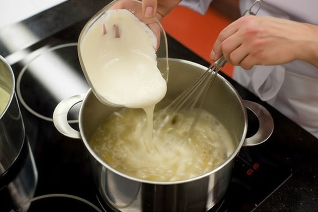 Połącz śmietanę z łyżką mąki. Wlej do wywaru wraz z koprem. Gotuj przez 10 minut i delikatnie ostudź zupę.