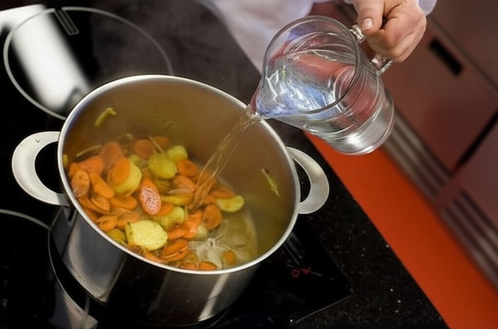 Marchewkę i ziemniaki obierz, opłucz i pokrój na plastry. Cebule obierz i pokrój w piórka. Warzywa podsmażaj w garnku na gorącym oleju, wsyp przyprawy (curry, ostrą paprykę, cynamon, goździki i kardamon). Całość smaż moment, następnie zalej 1,5 litrem wody. Zupę gotuj około 40 minut - aż do chwili, gdy warzywa całkowicie się rozgotują.
