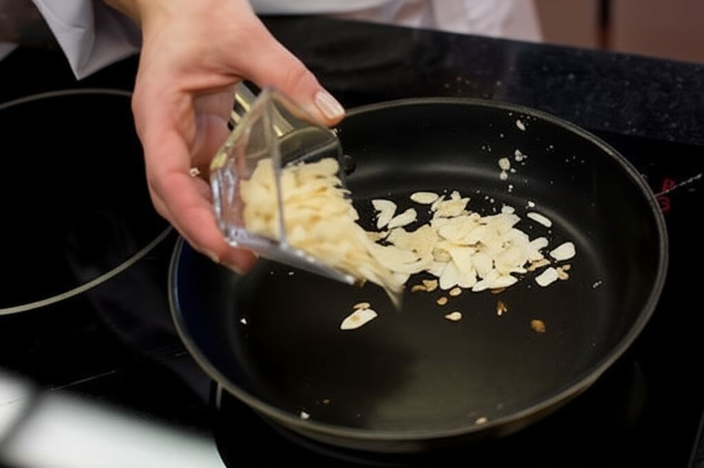 Prażone migdały zyskują pełnię aromatu, gdy przygotowujesz je na suchej patelni, często mieszając. Są gotowe, gdy zaczną intensywnie pachnieć i nabiorą złocistego koloru. Możesz też uprażyć je w piekarniku w temperaturze 175-180°C, co zapewni im równomierne zrumienienie.