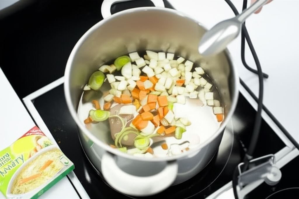 Dorzuć jeszcze kostkę Knorr i gotuj aż wszystko będzie miękkie.