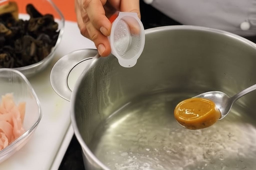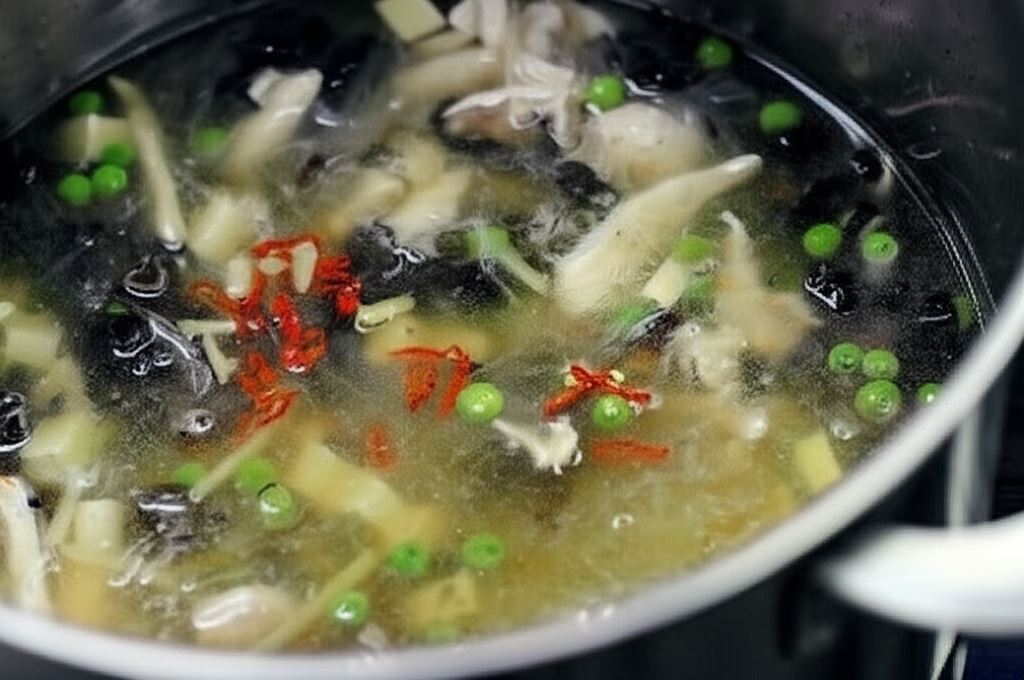 Sekret wyjątkowego smaku tej zupy tkwi w wodzie, w której moczyły się grzyby mun. Dodanie jej do bulionu nadaje całości głęboki, umami charakter. To właśnie ten krok sprawia, że zupa zyskuje autentyczny, orientalny profil smakowy, niemożliwy do osiągnięcia przy użyciu samych przypraw.