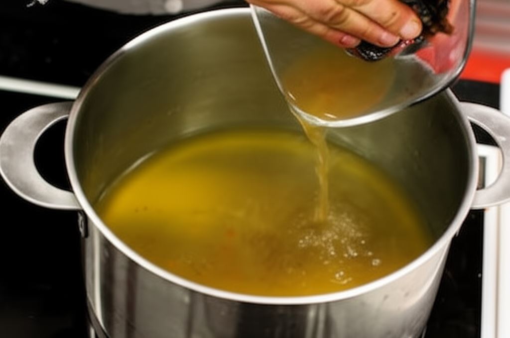 Płyn, w którym namaczały się grzyby dolej do bulionu.