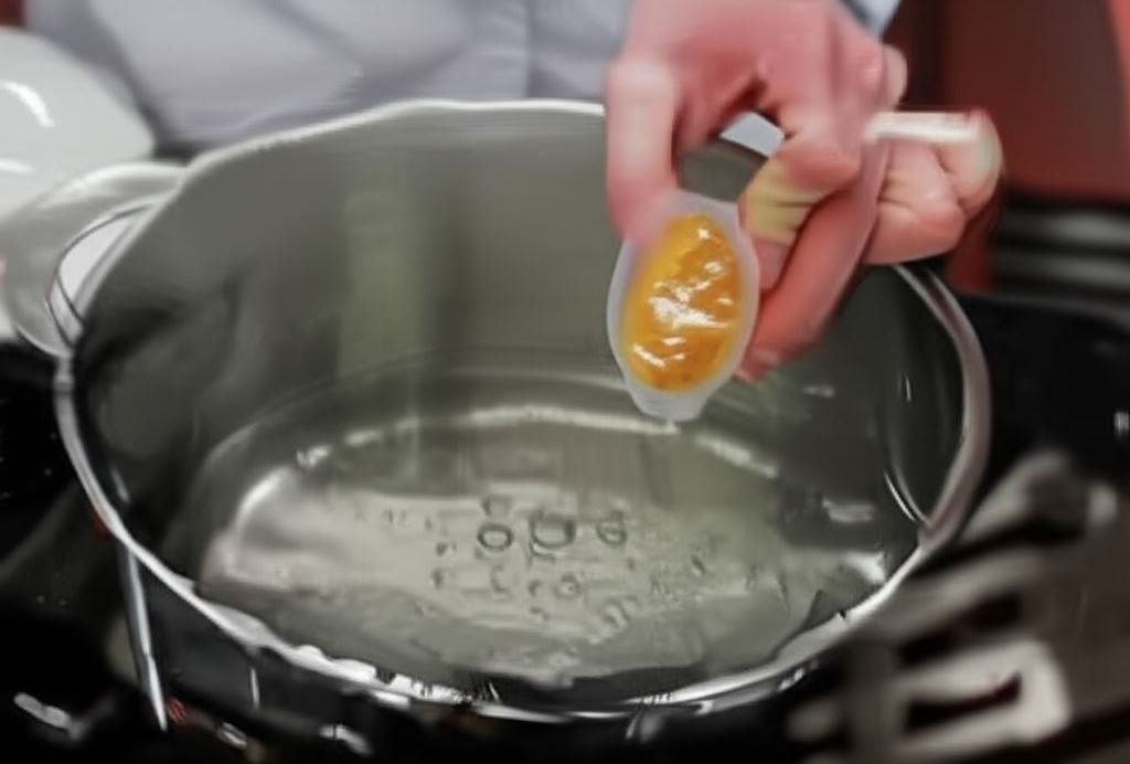 Do wrzącej wody wrzuć jedną kostkę rosołową Knorr.