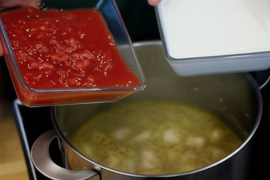 Rozgrzewająca zupa pomidorowa z chili to fascynująca fuzja smaków łącząca klasykę z orientalną nutą. Aromatyczne połączenie pomidorów, mleka kokosowego, imbiru i papryczki chili tworzy harmonijną kompozycję, która rozgrzewa i pobudza zmysły. Delikatna kwasowość pomidorów idealnie równoważy się z kremową słodyczą mleka kokosowego, a pikantne akcenty chili dodają charakteru.