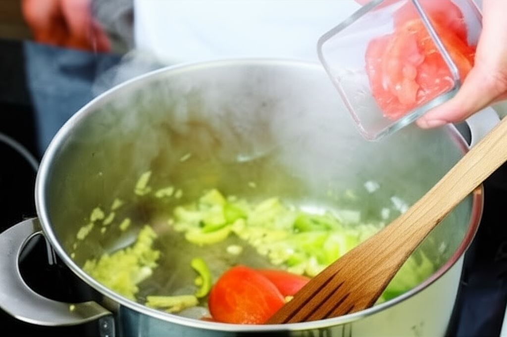 Aromatyczna zupa pomidorowa z makaronem to prawdziwy symbol domowego ciepła i tradycji. Nasza wersja łączy klasyczny smak z nutami kuchni włoskiej, tworząc kompozycję, która zadowoli nawet najbardziej wymagające podniebienia. Soczyste pomidory, chrupiący seler i aromatyczna cebula podsmażone na oliwie z oliwek uwalniają pełnię smaków, które w połączeniu z bulionem z kostki Rosołu z kury Knorr tworzą idealną bazę dla delikatnego makaronu.