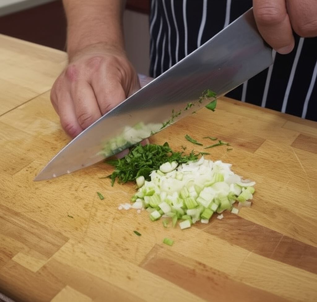 Posiekaj drobno szczypiorek z młodą cebulką i natkę pietruszki.