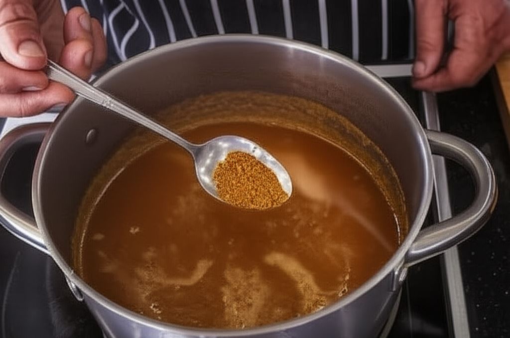 Seler, cebulę, paprykę i czosnek potnij w większą kostkę. Warzywa umieść wraz ze skorupami w rozgrzanym do 190°C piekarniku na około 40 minut, mieszając całość od czasu do czasu. Potem przełóż skorupy i warzywa do dużego garnka, zalej około 5 litrami wody i gotuj około 3 godziny. Po upływie tego czasu wsyp estragon, Majeranek z krajów śródziemnomorskich Knorr, Oregano z Turcji Knorr, Tymianek z Polski Knorr, Pieprz czarny ziarnisty z Wietnamu Knorr, liście laurowe oraz dodaj pomidory z puszki. Wywar gotuj jeszcze przez godzinę. Na koniec przecedź przez drobne sitko.