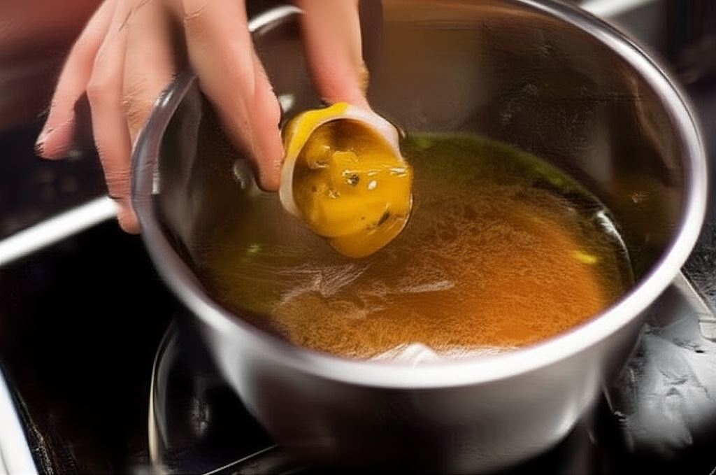 Doprowadź bulion wołowy do wrzenia. Przypraw go według uznania kilkoma kroplami sosu sojowego i Bulionetką domową wołową Knorr.