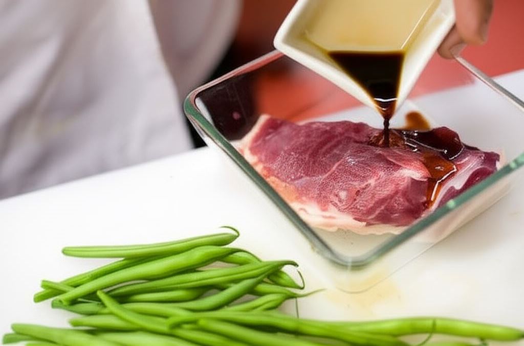 Zamarynuj pierś kaczki w reszcie sosu sojowego. Odłóż na 20 minut, a następnie usmaż tak, by w środku pozostała różowa.