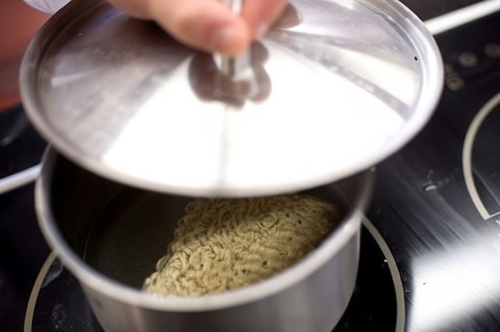 Makaron z trzech opakowań nudli Knorr zalej wrzącą wodą, naczynie nakryj i odstaw na 4 minuty, aby makaron zmięknął.
