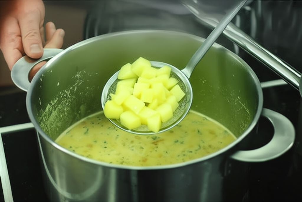 Dorzuć ziemniaki i wszystko gotuj na wolnym ogniu, aż będą miękkie.