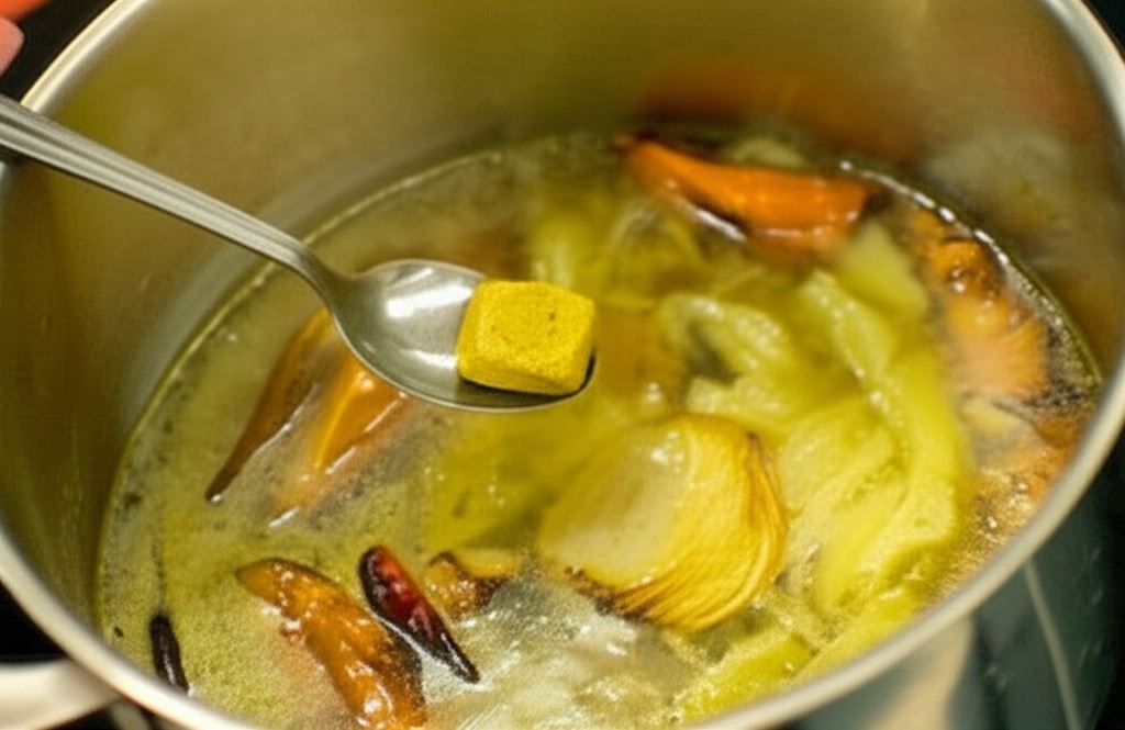 Wlej 1,5 litrem wody i zagotuj do wrzenia. Wsyp 2 kostki Rosołu szlachetnego drobiowo - warzywnego Knorr i przygotowane pomidory.