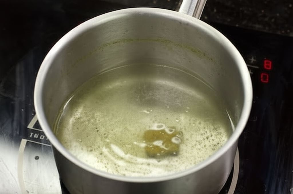Roztop w garnku 1 kostkę Knorr w 0.5 litra wrzątku, potem wsyp oliwki i dolej oliwę. Gotuj przez 5 minut.