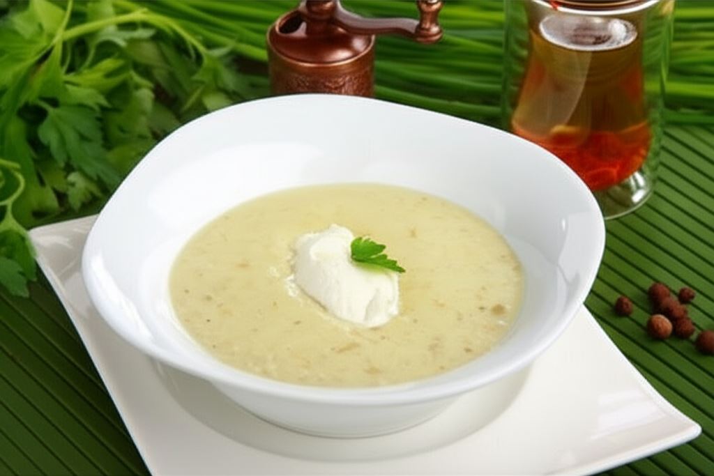 Śródziemnomorska Zupa z Zielonymi Oliwkami i Mascarpone