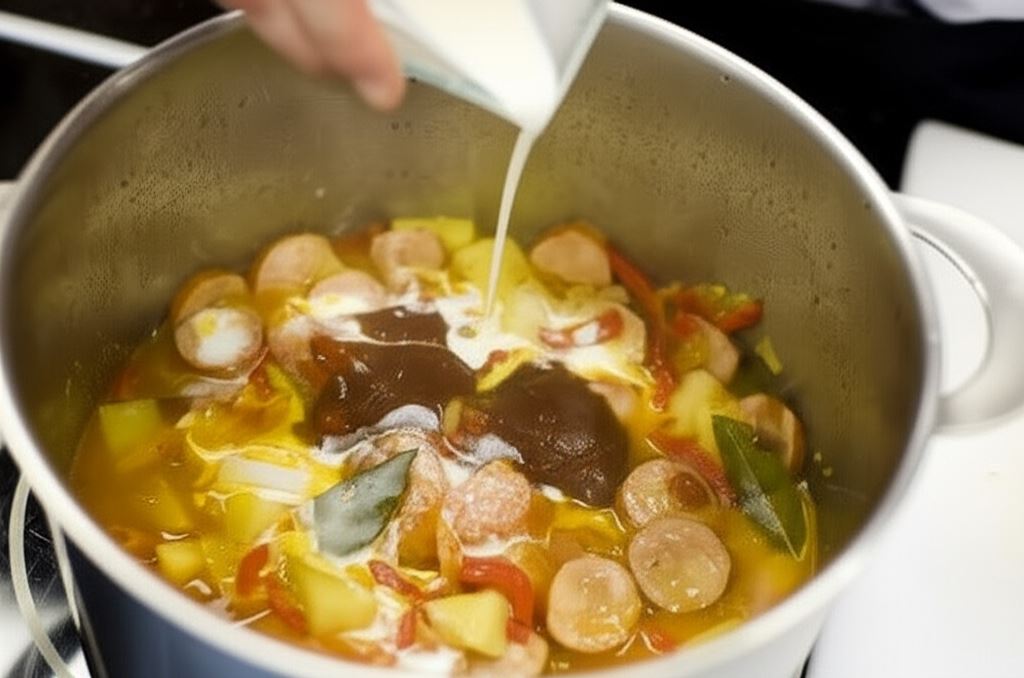 Dodanie śmietany i ketchupu Hellmann’s Łagodnego na końcu gotowania nadaje zupie aksamitnej konsystencji i delikatnie słodkawego posmaku, który równoważy wyrazisty smak wędzonki. Liść laurowy wprowadza subtelny aromat, który harmonijnie łączy wszystkie składniki.