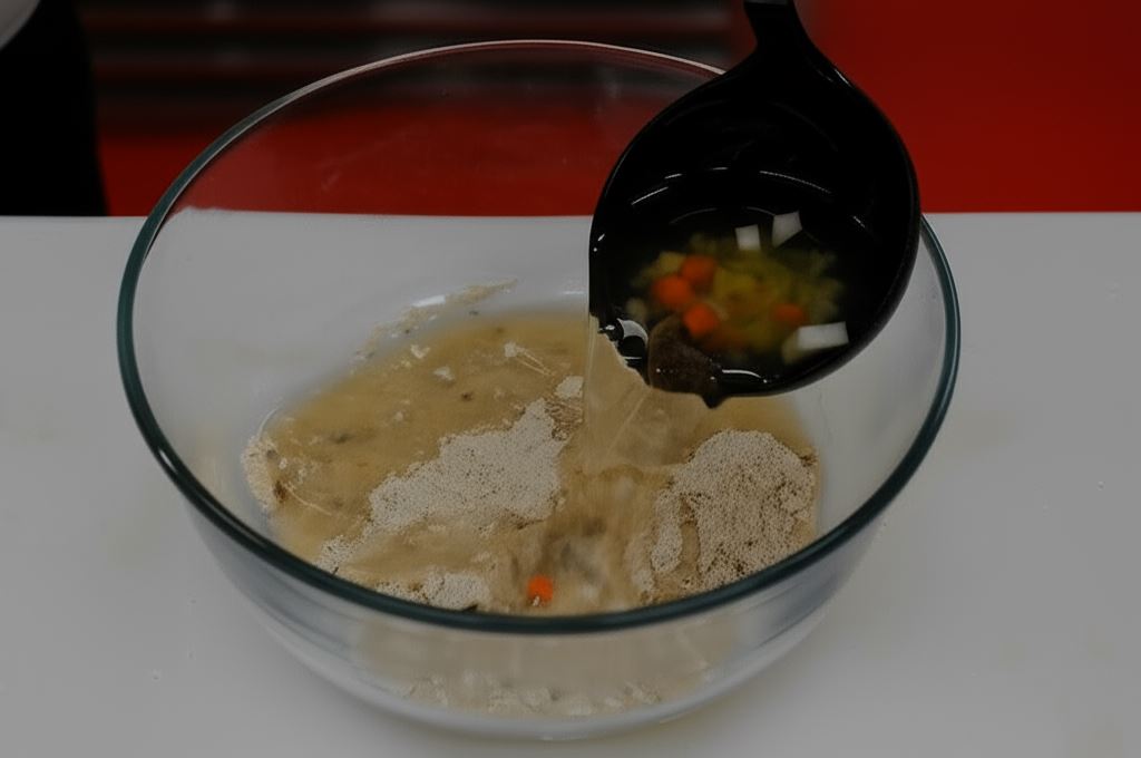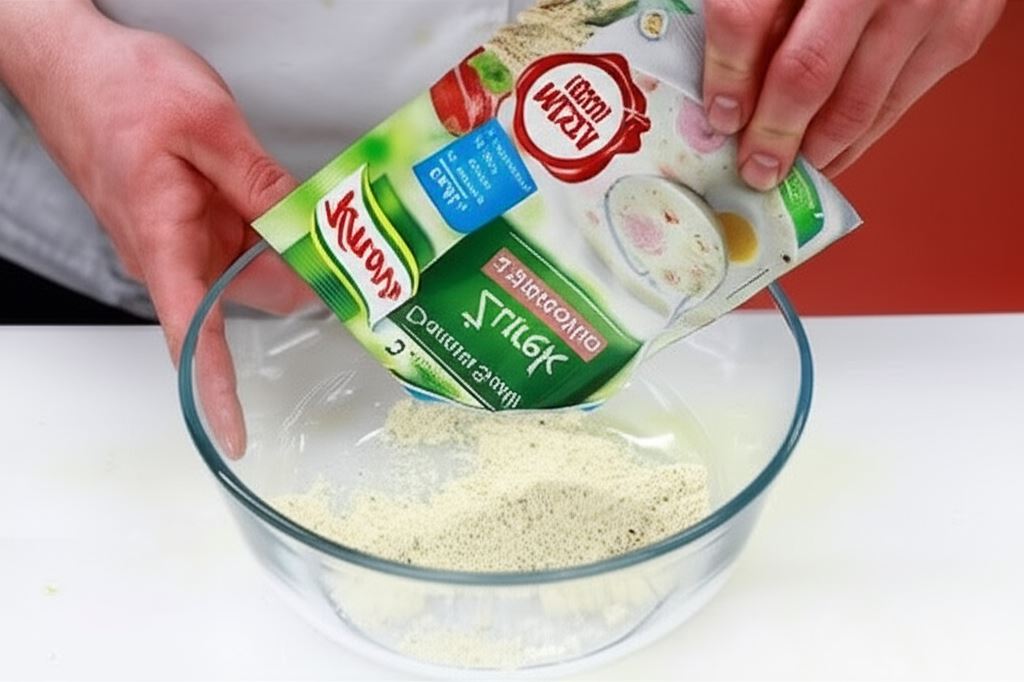 Żurek z wędzonką Knorr wsyp do miski i wymieszaj z niewielką porcją wywaru. Potem wlej do gotującej się zupy, ciągle mieszając – aby zapobiec tworzeniu się grudek.