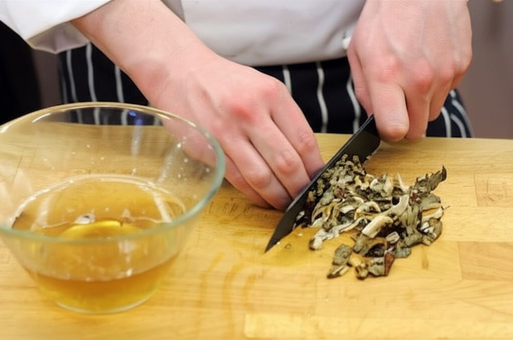 Zanurz grzyby we wrzątku na około 20 minut, następnie pokrój w cienkie paski i wrzuć do wywaru.