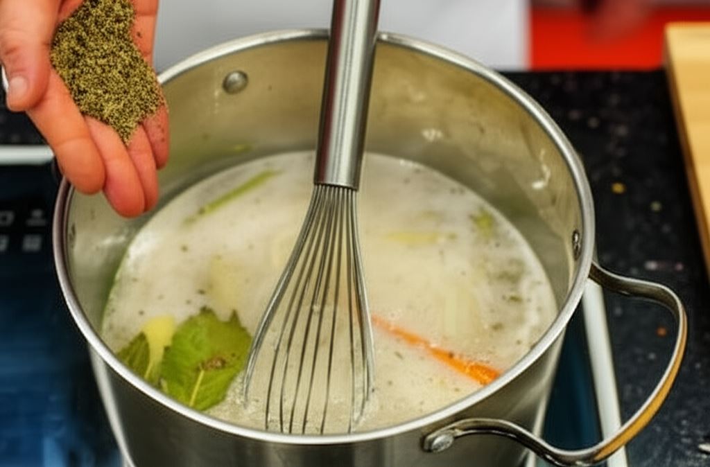 Zawartość obydwu opakowań Knorr zmieszaj z małą ilością zimnej wody i dodaj w garnku do ugotowanego wywaru. Całość gotuj na małym ogniu przez kolejne 5-8 minut.