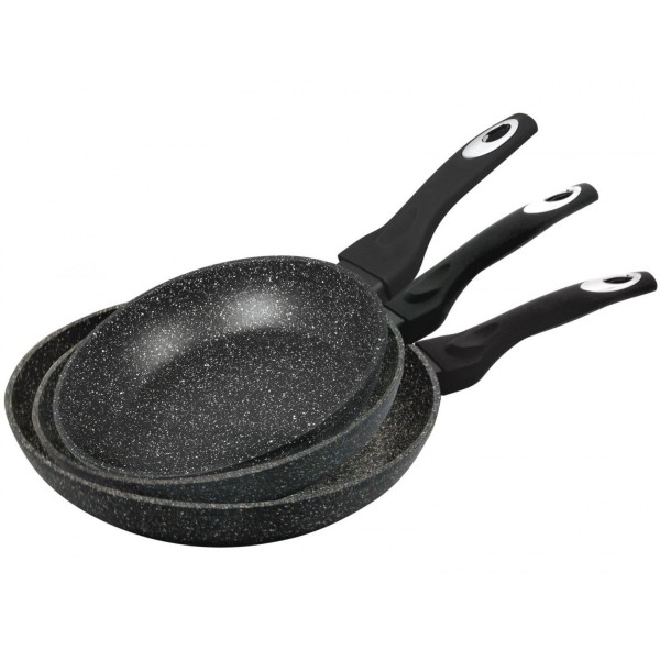 • Klasyczny zestaw trzyczęściowy — mała patelnia (20–24 cm), średnia (24–28 cm), duża (28–30+ cm).