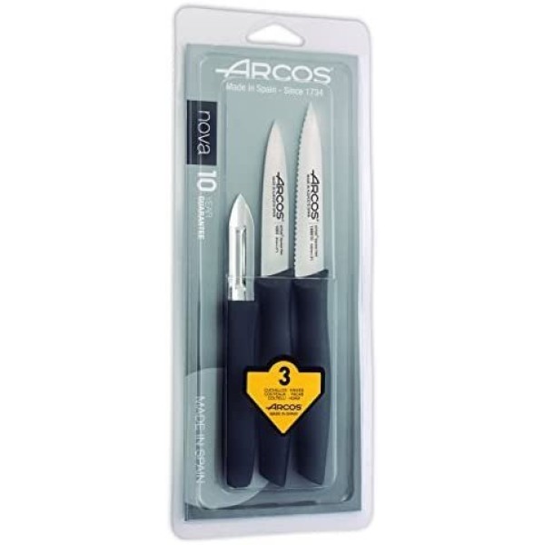 Profesjonalny zestaw Arcos zawiera kompleksowy wybór ostrzy, zazwyczaj: nóż szefa kuchni, nóż do chleba, nóż do wędlin, nóż uniwersalny oraz mały nóż do obierania. Zestawy te często są uzupełnione nożycami i musakiem dla pełnej gotowości do pracy.